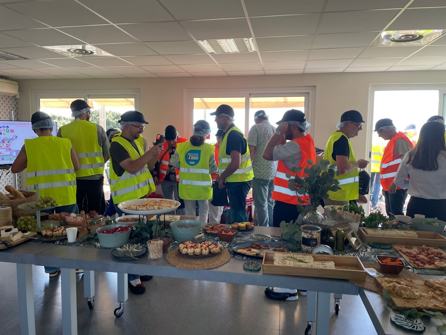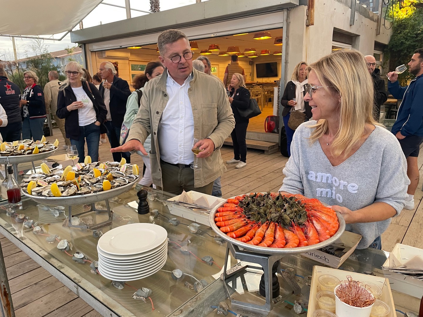 Huîtres spéciales Tarbouriech, moules, bulots, crevettes… La fraîcheur était au rendez-vous. Chaque bouchée révélait la qualité remarquable de ces produits élevés dans l’étang. L’équipe s’est régalée, les conversations ont fusé autour des tables.